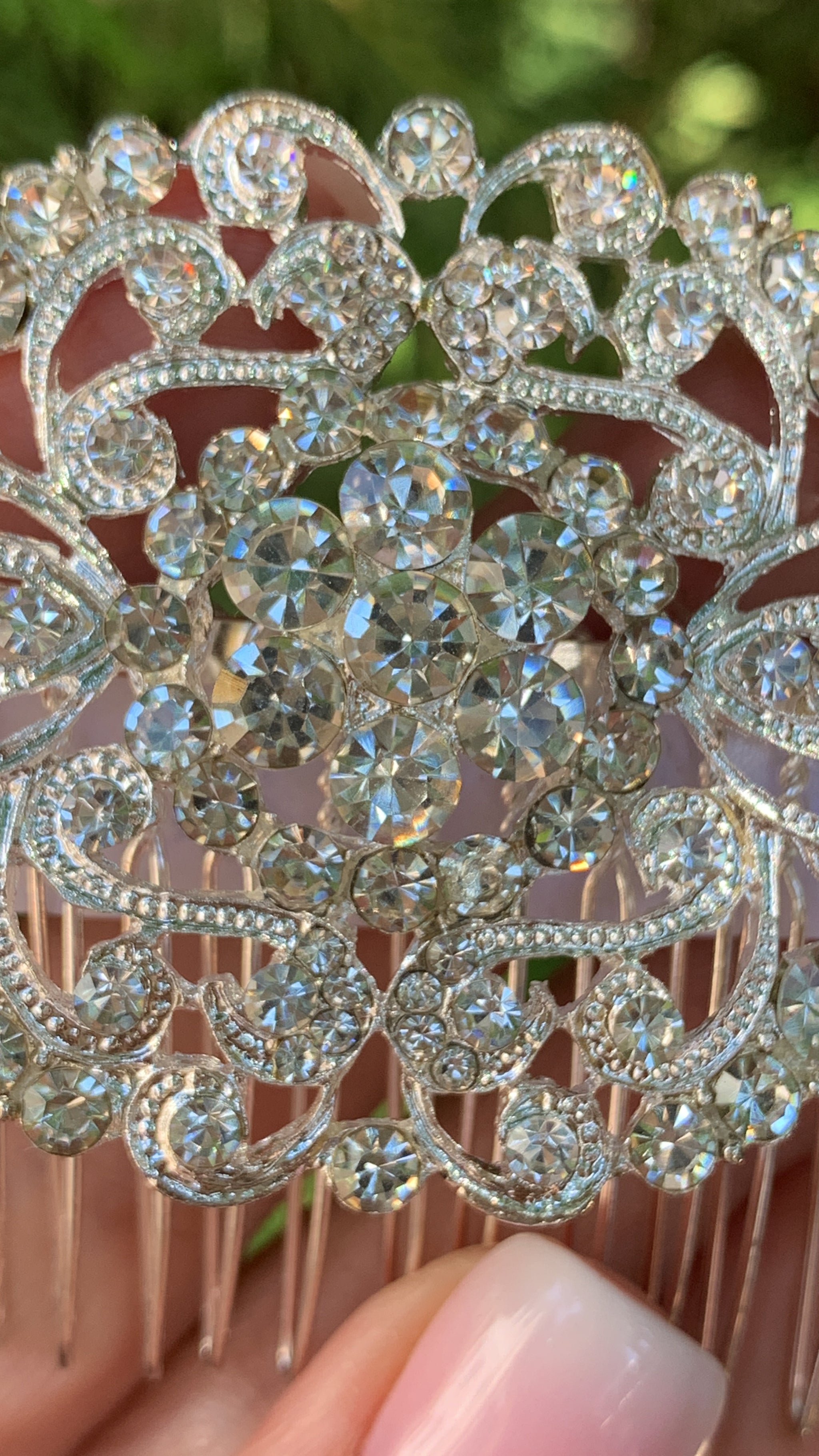Add a touch of modern elegance to your wedding day with our stunning #16 Silver Bridal Hair Comb. Featuring sparkling Cz crystals, this hair comb is the perfect bridal accessory for a beautiful and stylish look.