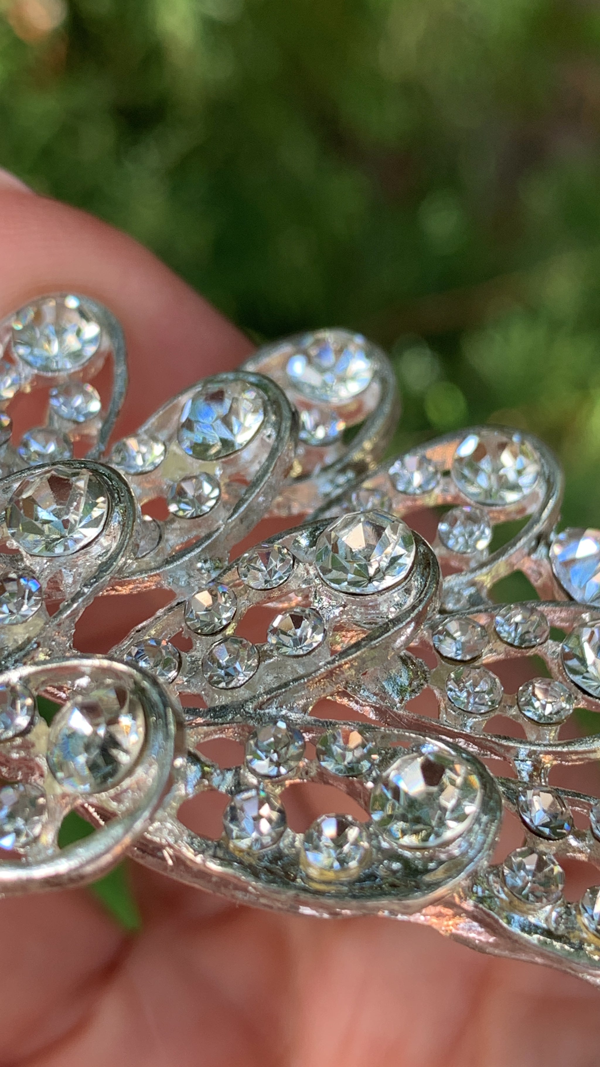 A best-selling bridal accessory with proven retail appeal, this silver wedding tiara offers boutique buyers a timeless statement piece for their collections. Standing 1.75 inches tall at the highest point, this crown is designed with polished silver and set with brilliant cubic zirconia and crystal stones, ensuring a radiant sparkle that brides instantly connect with.
