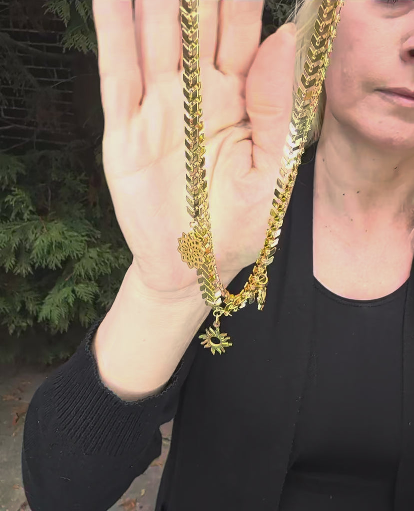 Each pendant is lightweight, beautifully detailed, and designed to complement the chevron chain’s sculptural look.