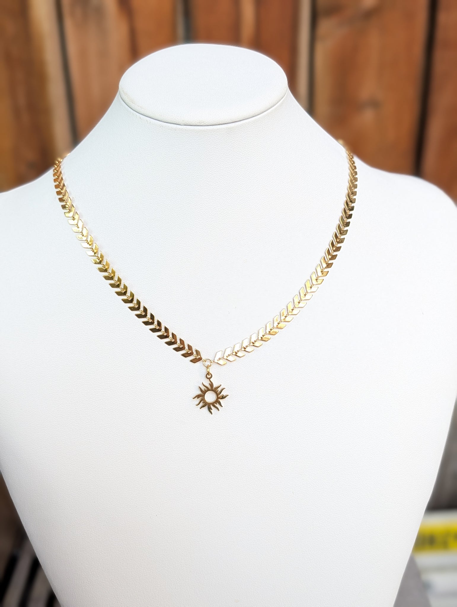 Sleek, modern, and full of quiet shine — this Chevron Pendant Necklace is part of the Birthday Treat Sample Sale, offering an effortless way to elevate your everyday look.
