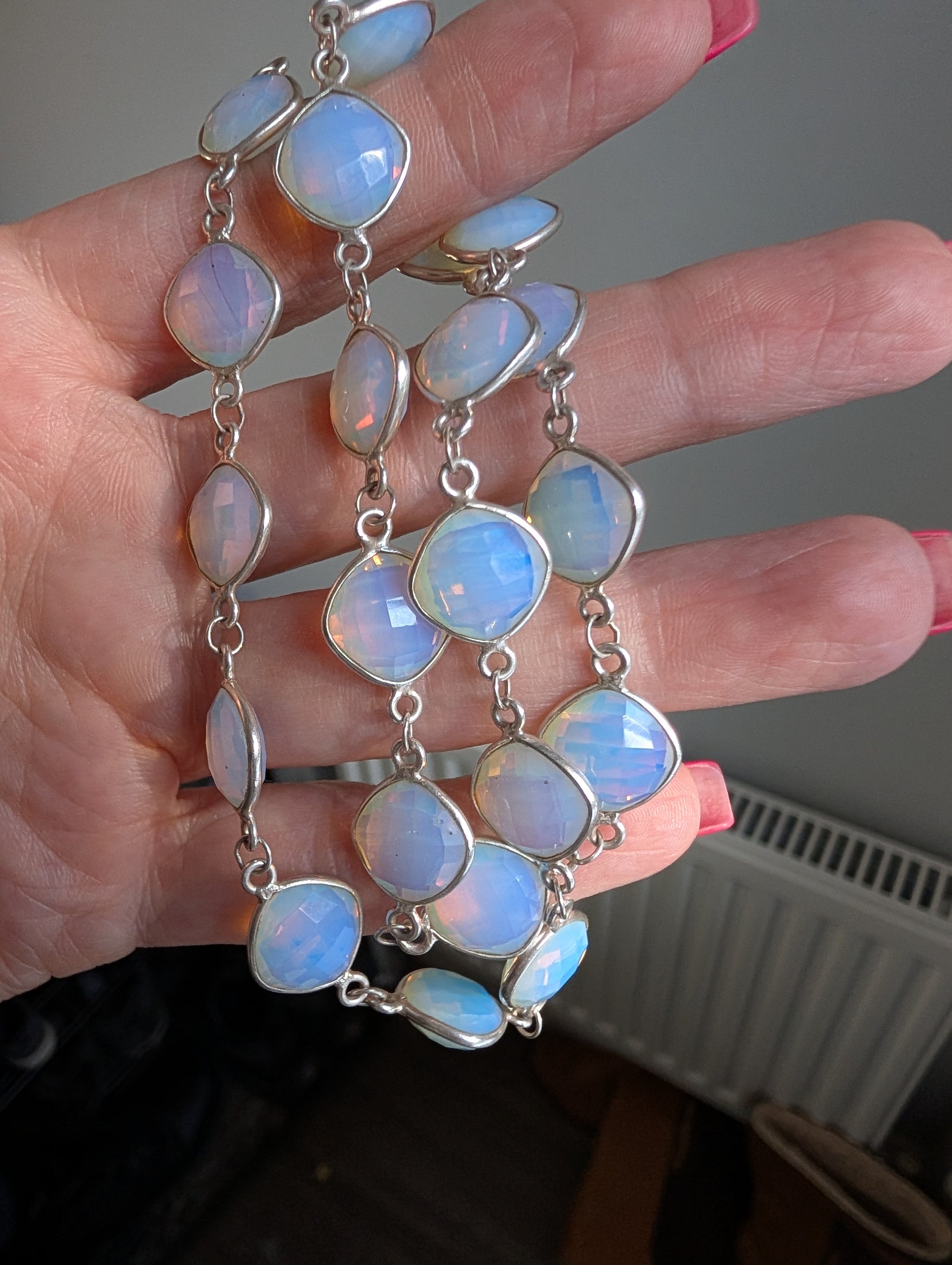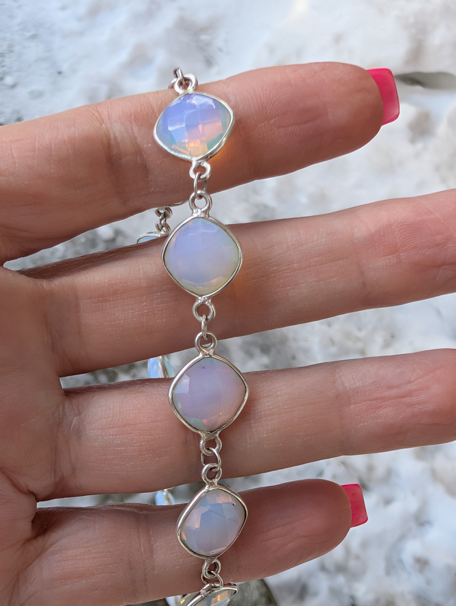 Please note: Opalite is a man-made glass, valued for its iridescent play of color and soothing energy.